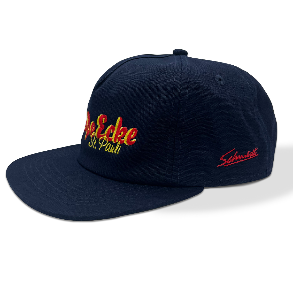 Die Cap zum St. Pauli Musical kommt mit frontaler „Heiße Ecke“-Stickerei und seitlich aufgebrachtem Schmidt-Logo.